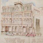 This Queen Street East Fish and Chips joint closed a week after I sketched it. It was a favorite Leslieville spot for families and lunchtime gatherings for decades. I like that it wasn’t yuppified. We used to call it “un-Reliable Fish and Chips” because its hours were a little unpredictable.