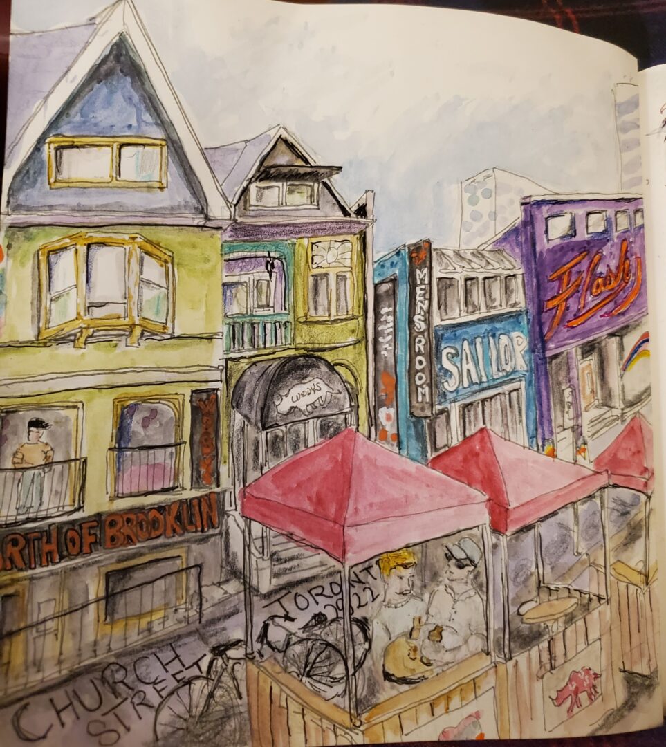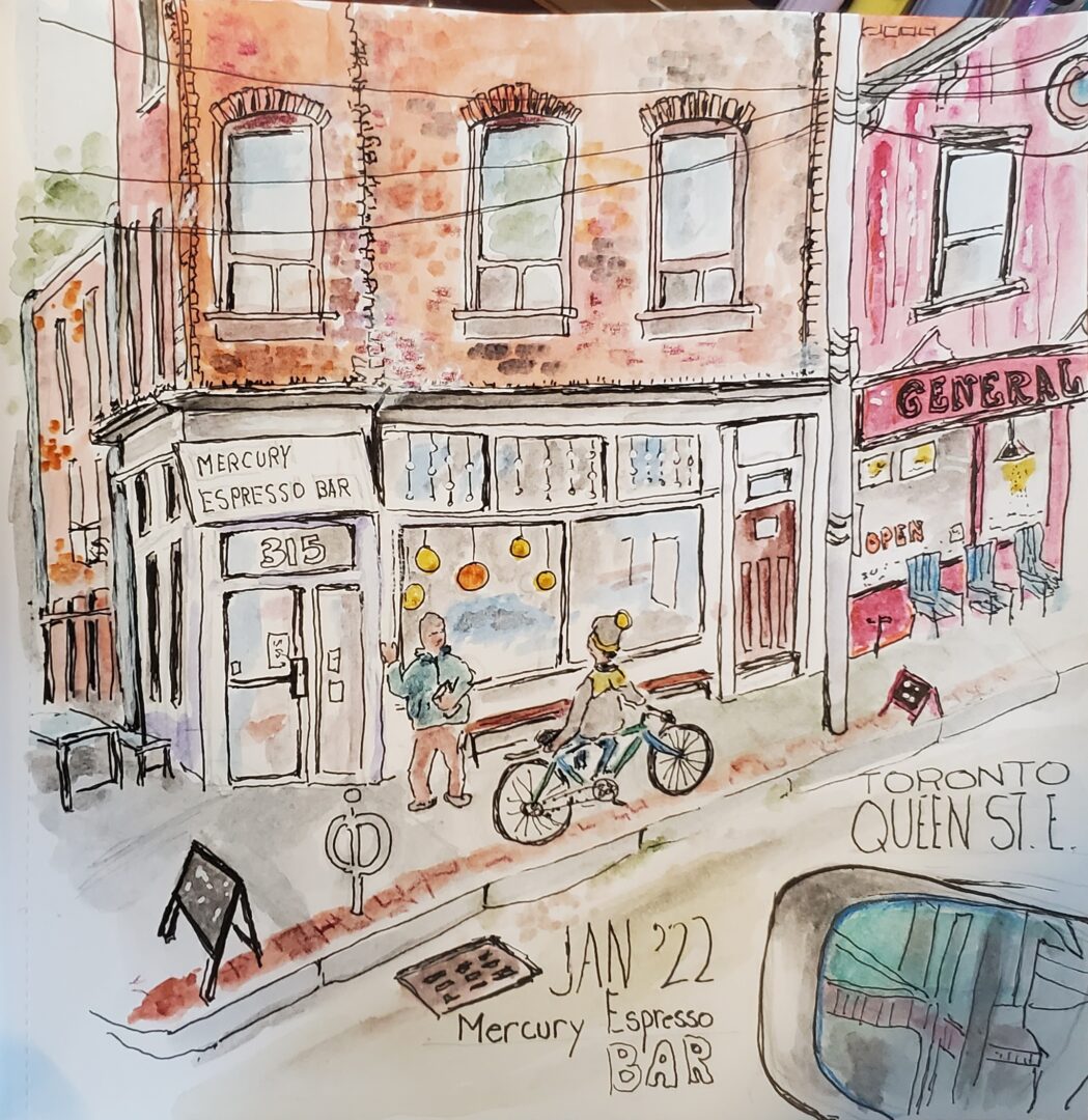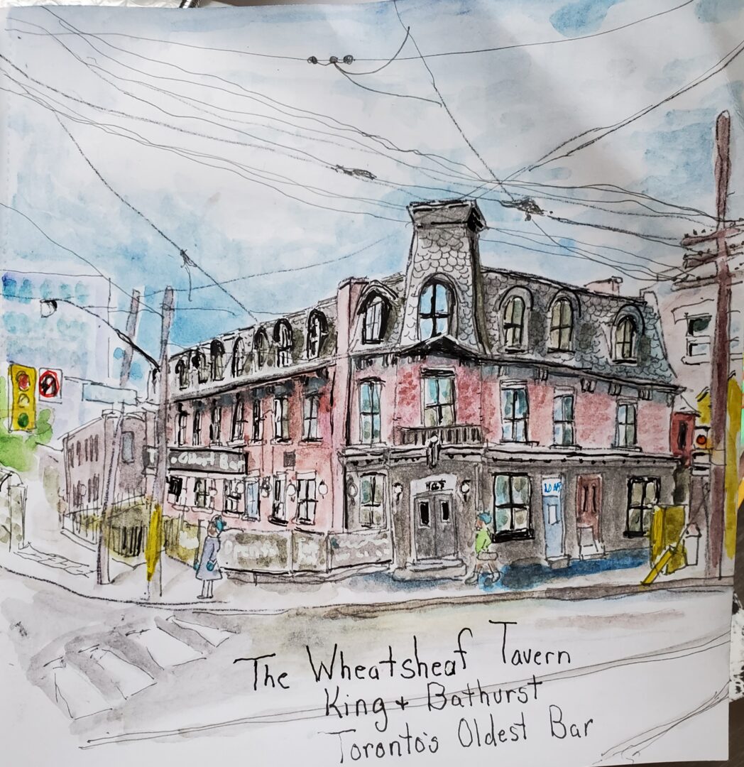 I did a sketch of the Wheatsheaf Tavern as it looks now. I haven’t been in it since it reopened but 20 years ago when it was still a dive I used to work nearby and my colleagues and I found it a desirable place for a drink because our boss wouldn’t be caught dead in such a down and out bar. How times have changed now that it is renovated and trendy.