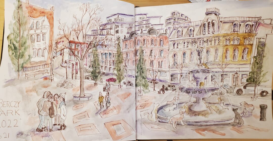 Pronounce “Bear Ski” Park, this small park between Wellington and Front Streets in Old Toronto has a newish whimsical fountain with porcelain dogs, so a favorite dog owner destination for puppy selfies. I always wondered if it had anything to do with the fact that an annual dog themed festival “Woofstock” used to happen in this part of the city. It has since moved to Harbourfront. Dogs used to cool off in the old fountain on those occasions, I recall.