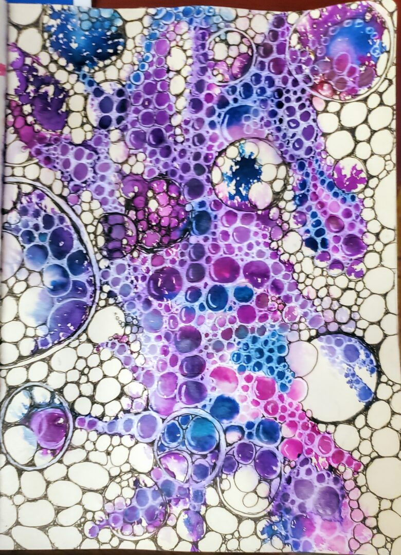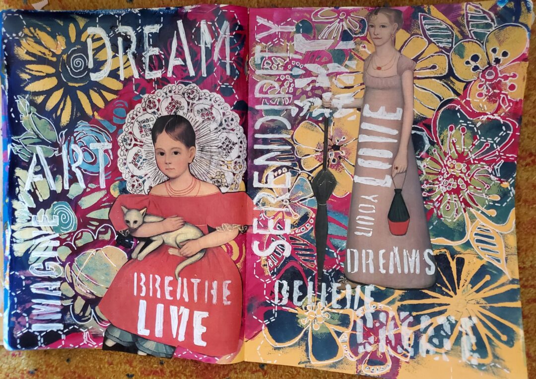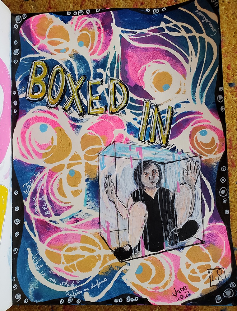 It’s interesting that this struggle echoes one I had earlier in life when a construct of “the real me” led me to feel confused and guilty when I acted in ways that I viewed as “out of character”. Since my “real me” was a very lofty best of myself I spent a lot of time feeling like a failure. Hopefully the lessons learned then about all of us being a gestalt of selves can be applied to art journalling and I can avoid this trap laid out by my mojo thief.