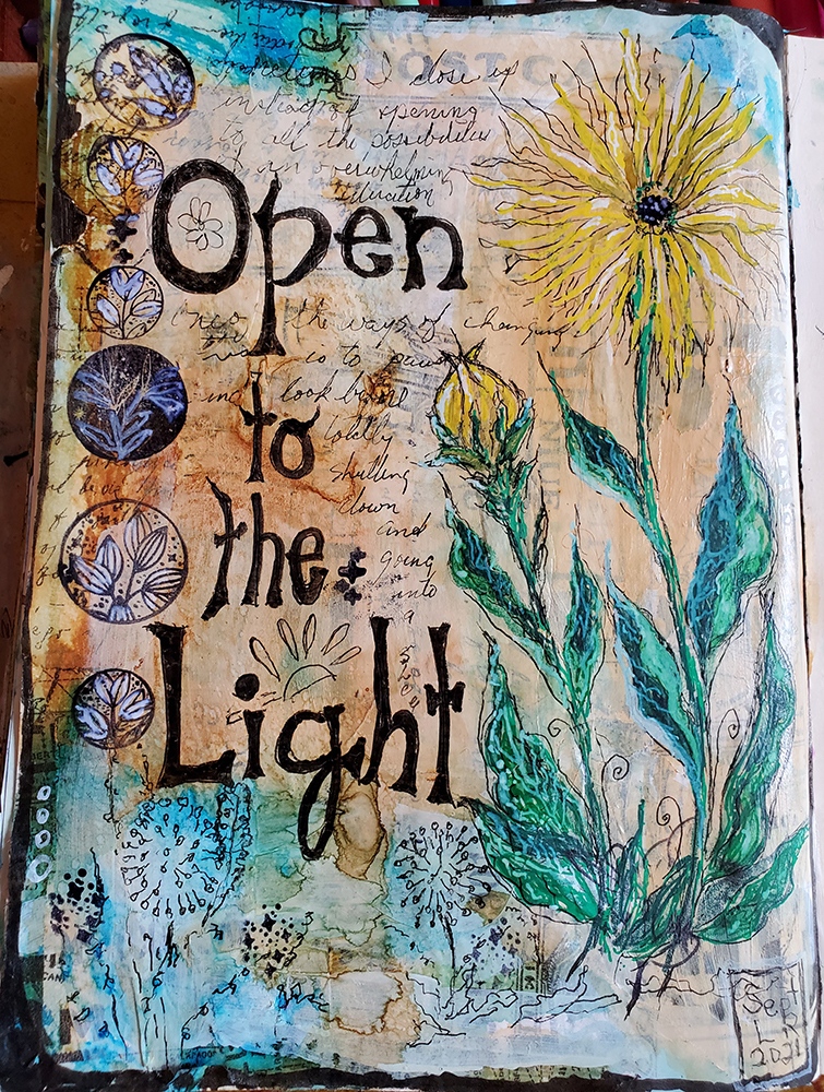 I wanted to convey a habit I have of closing down and tuning out when I feel over-whelmed or depressed. Sometimes that’s warranted but usually it is better to open oneself up to absorb new energy–from the sun, from others, from new ideas or helpful advice. So the open flower is the new habit and the closed flower is what I mostly do now.