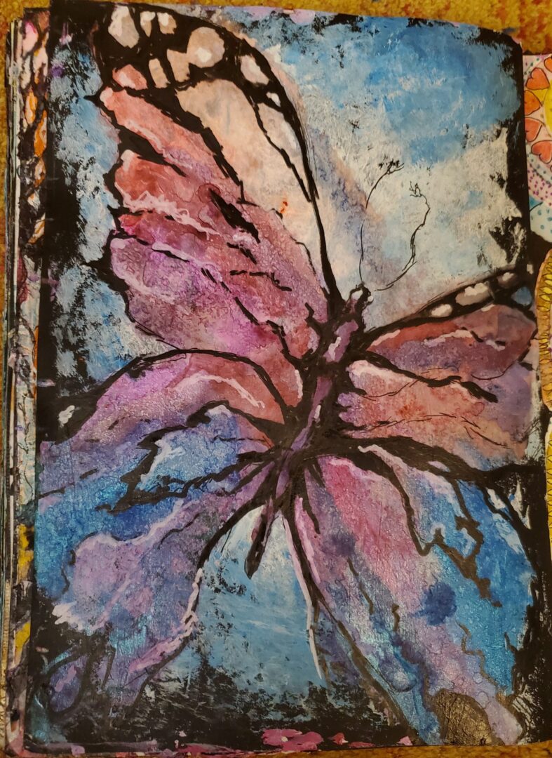 I just wanted to float away from this year when I started to think about the topic of “closure”. Like many others around the planet, it has been a year of almost total isolation for me. One of the good parts of the year involved participating in France Papillion’s “A Layer a Day” group on Facebook where members call themselves “butterflies” after the surname of our group leader. I painted the balloon to represent all the butterflies that kept my spirits up with kindness, compliments and jokes during the year.