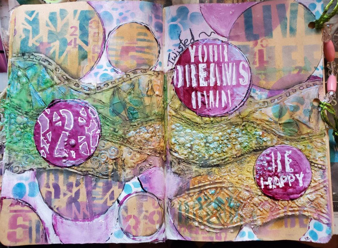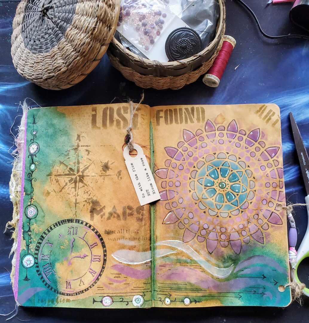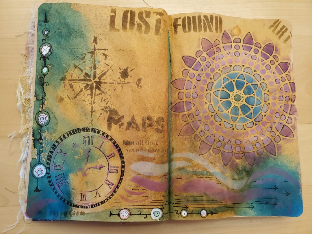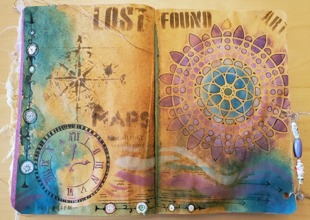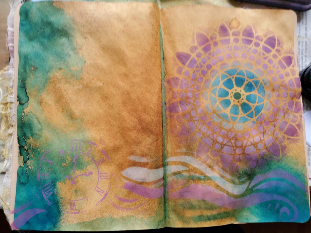 In the “A Layer A Day” Art journaling group in fall 2019 we were talking all about flow states and this week the prompt was what we did when the flow wasn’t happening. I journaled about dipping into the hive mind. I was thinking about Pinterest and YouTube but also the inspiration from the work of other “butterflies”.